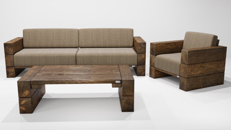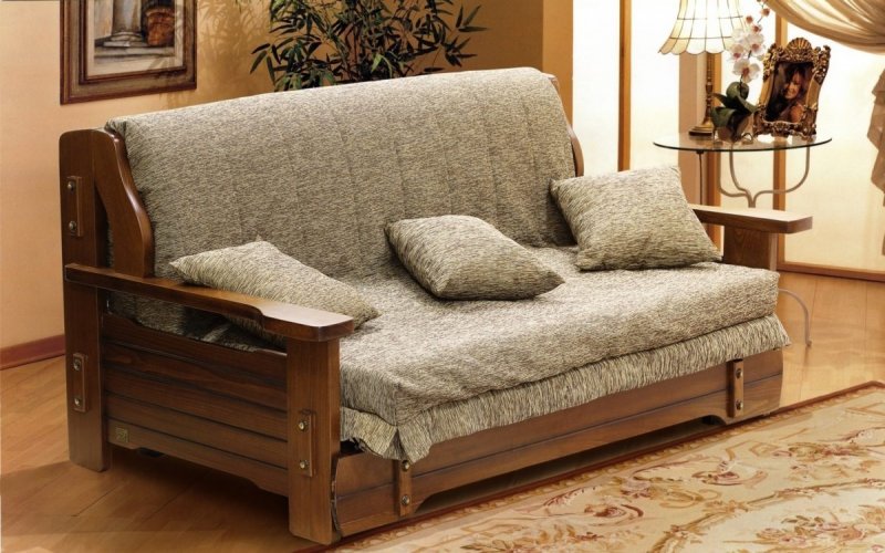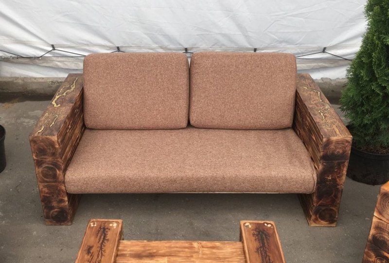 Мебель из натурального дерева пользуется огромной популярностью. Каркасы выполняют из самых разных пород. Это могут быть дорогие дуб, бук, береза, орех или бюджетная сосна. Диваны из бруса массивные, прочные, долговечные, имеют благородный внешний вид.