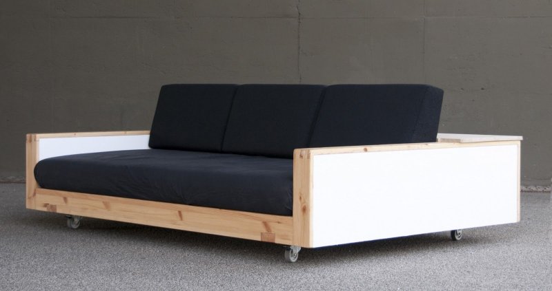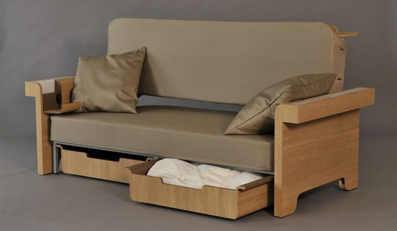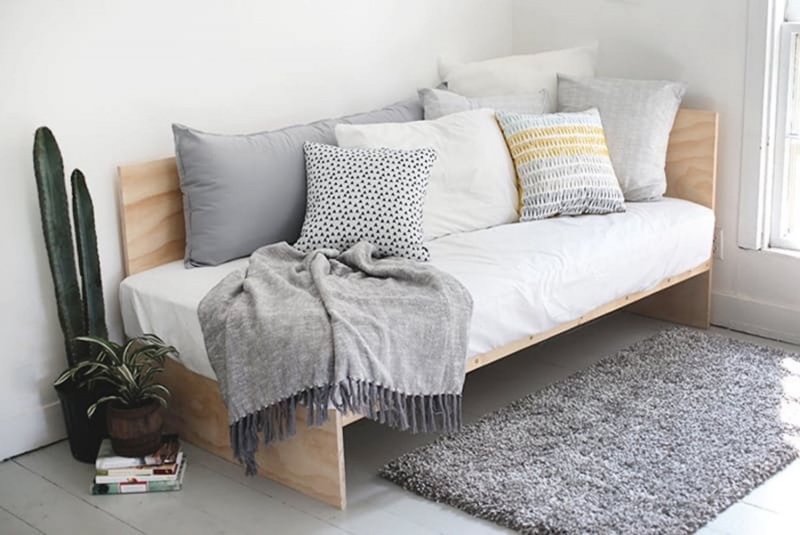Натуральная, безопасная фанера имеет высокую износостойкость и незаслуженно считается многими производителями мебели материалом низшего качества. Из нее легко сделать эксклюзивный диван самостоятельно, наслаждаясь творческим процессом и потрясающим результатом. Фанера удобна в работе, ее просто резать, сгибать. Листу можно придать любую форму, не опасаясь, что он деформируется или сломается.