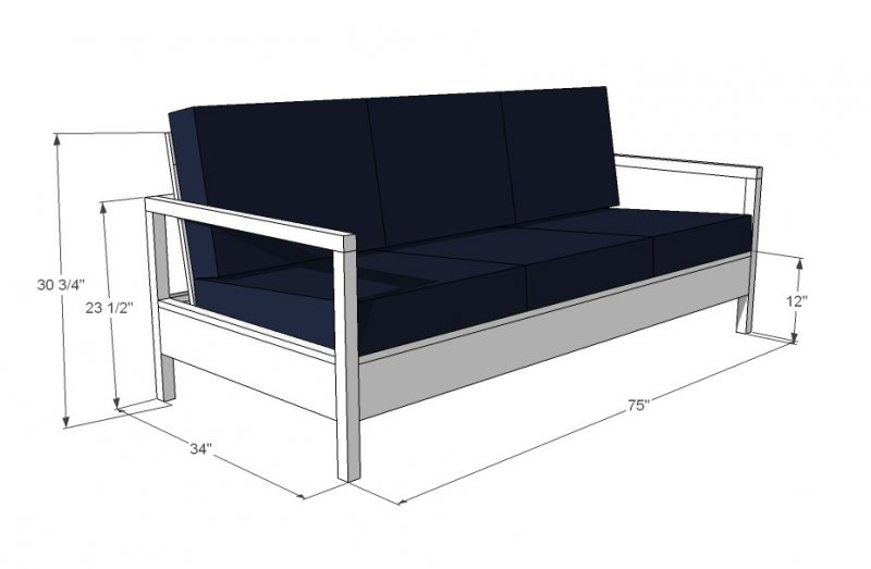 Каркас будем делать стандартных габаритов: 190 см – длина изделия, 80 см – высота спинки, 30 см – высота сиденья без учета подушек.
