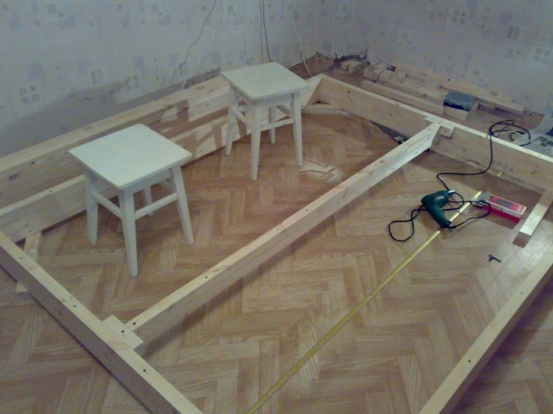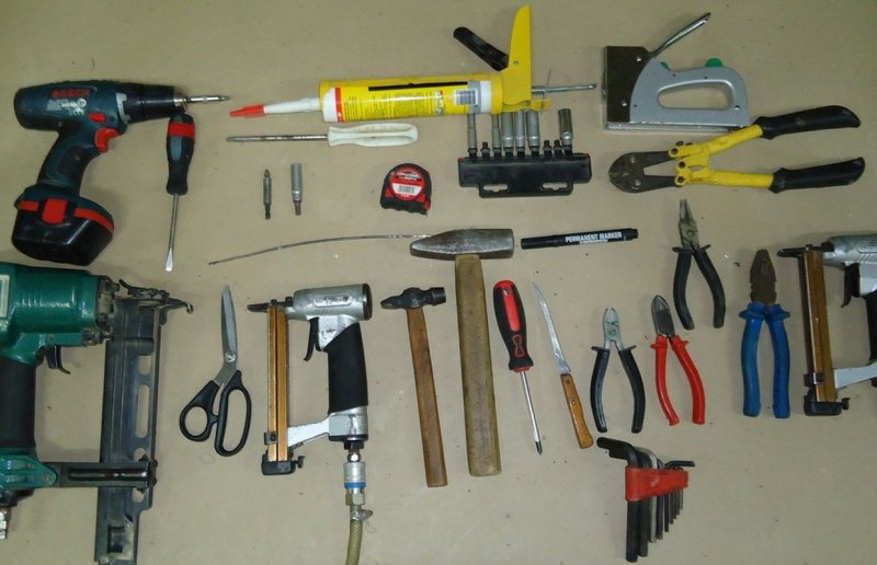 Основу лучше сделать из дерева, подойдет брус хвойных пород, ДВП, ДСП, фанера. Для работы в домашних условиях потребуется большое пространство, набор необходимых инструментов (циркулярная пила, мебельный степлер, шуруповерт).