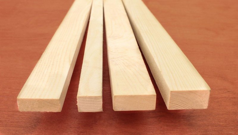 деревянный брус 40х40 мм, доска толщиной 40 мм, ДСП, фанера;