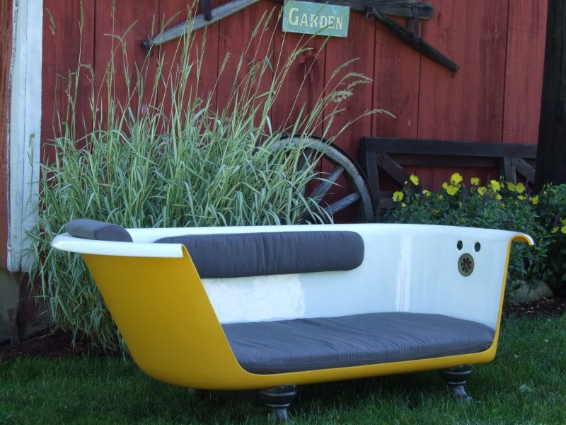 Интересный и креативный диван можно сделать из старой ванны. Функциональный декор станет украшением любого помещения. Для изготовления подойдет пластиковая, чугунная, металлическая емкость. Особенно стильный диван получится из моделей старого образца.
