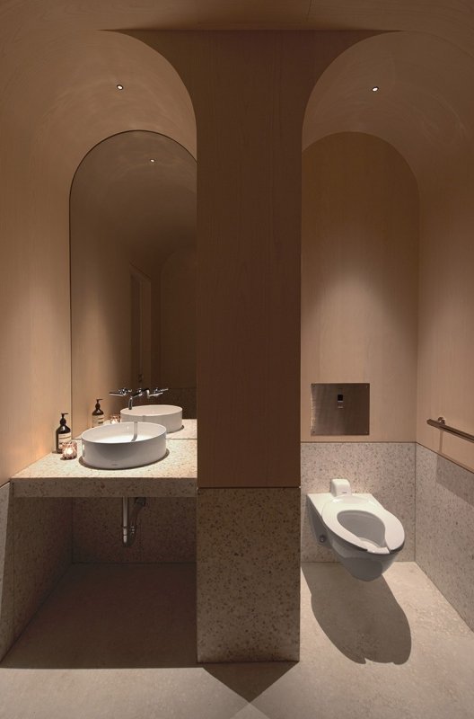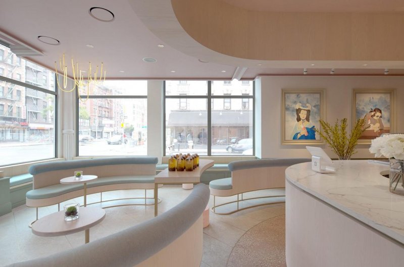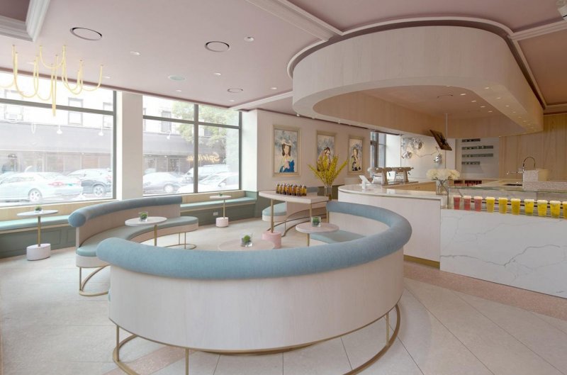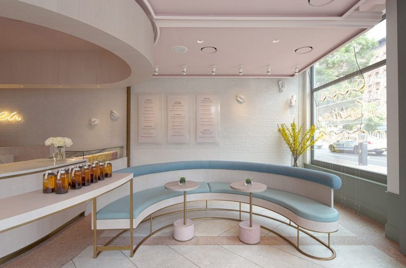 Spiritea — чайный бар, где подают травяной чай, это третья точка одноименного чайного дома. Проектировать интерьер нового заведения доверили местной фирме New Practice Studio. Архитекторы сделали ставку на приглушенные пастельные тона — пыльный розовый, кремовый, бледно-зеленый и синий — в сочетании со светлым деревом. Авторы проекта отмечают, что задумывали пространство, как свежую игривую среду, где чувствуется слияние восточных и западных чайных культур. Локация: Манхэттен, Нью-Йорк Площадь: 167 кв. м Архитекторы: Сидонг Ланг, Тай-Ли Ли, Няньлай Чжун, Цзуньчао Янг, Йийи Ван, Сюфан Чжао Фотограф: Энди Чу Чтобы подчеркнуть важность чайной церемонии, архитекторы New Practice Studio сформировали пространство вокруг изогнутого прилавка из белого мрамора — здесь продают и готовят чай. Почти все предметы мебели в Spiritea — в том числе аккуратные круглые столики с розовым основанием — опираются на тонкие бронзовые стержни. Они придают пространству ощущение легкости. В качестве дополнительного декора — неоновая лампа в виде золотых дуг и картины молодых художников Кун Вэй и Яфан Чжи из Университета Цинхуа в Китае. Мы разбираем интерьеры - подробно! Чтобы вы могли лучше понимать, на чем строится хороший интерьер, чтобы учились у лучших. Подготовка такого материала требует времени, а интерьеров много. Помогите нам выбрать самые достойные - проголосуйте ЗА интерьер, если вам хочется увидеть его в расширенной публикации и узнать детали создания.