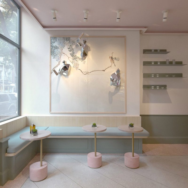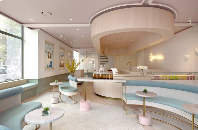 Spiritea — чайный бар, где подают травяной чай, это третья точка одноименного чайного дома. Проектировать интерьер нового заведения доверили местной фирме New Practice Studio. Архитекторы сделали ставку на приглушенные пастельные тона — пыльный розовый, кремовый, бледно-зеленый и синий — в сочетании со светлым деревом. Авторы проекта отмечают, что задумывали пространство, как свежую игривую среду, где чувствуется слияние восточных и западных чайных культур.