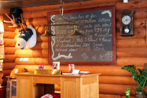 Резиденция Санты Клауса в Лапландии Здание для Санты было построено в 1992-м году. С тех пор популярность Санты Клауса выросла на порядок, и старая резиденция стала нуждаться в срочной реконструкции. Строительство нового офиса для главного рождественского бородача мира прошло в рекордные сроки, и 30-го ноября новый офис был торжественно открыт на месте старого. Площадь резиденции увеличилась примерно в четыре раза и составляет теперь 723 квадратных метра. Резиденция оборудована компьютером с выходом в Интернет, видимо, чтобы Санта оставался в курсе последних новостей.