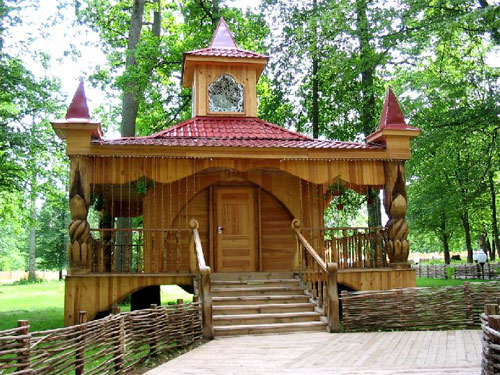 Усадьба Деда Мороза в Беловежской пуще Резиденция окружена забором протяженностью в полтора километра, а на иллюминацию было затрачено свыше сорока тысяч лампочек. Эта усадьба Деда Мороза начала свою работу в 2003-м году и стала прекрасным способом привлечения туристов со всей России и стран СНГ, так как работает круглогодично.