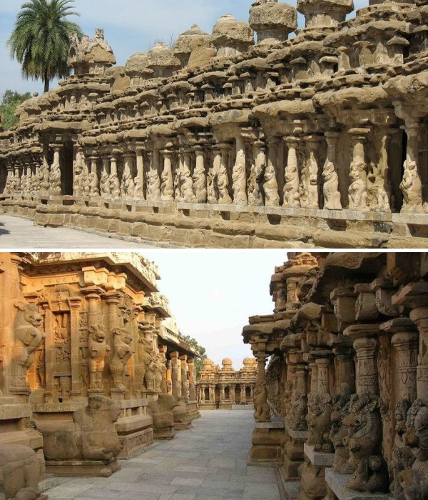 Среди паломников существует поверье, что подходить к колоннам нужно слева направо, чтобы увидеть даже скрытые символы, вырезанные на каждой из четырех сторон (Kailasanatha, Индия). | Фото: pikabu.ru.