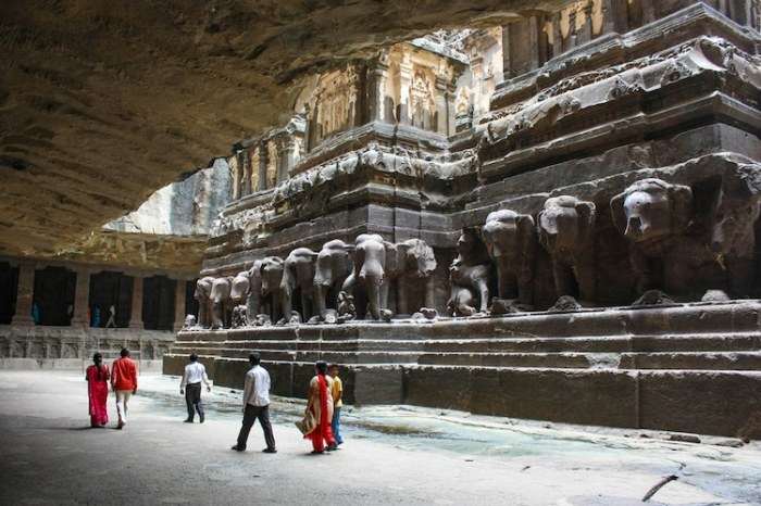 Эллора — это небольшая деревушка, расположенная в индийском штате Махараштра, недалеко от города Аурангабад, стала известна на весь мир благодаря уникальному мегалитическому ансамблю, состоящему из 34 пещерных храмов и монастырей. Причем не только высокохудожественная ценность древних объектов делает это место настолько значимым для мирового культурного наследия. Как оказалось «Пещеры Эллора» являются свидетельством мирного сосуществования трех различных религий – индуизма, джайнизма и буддизма.