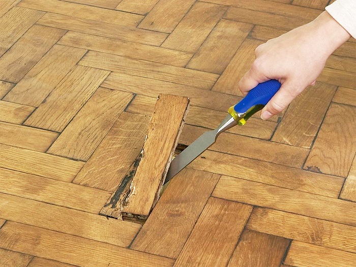 Если на паркете есть поврежденные участки, замените их. / Фото: static.tildacdn.com