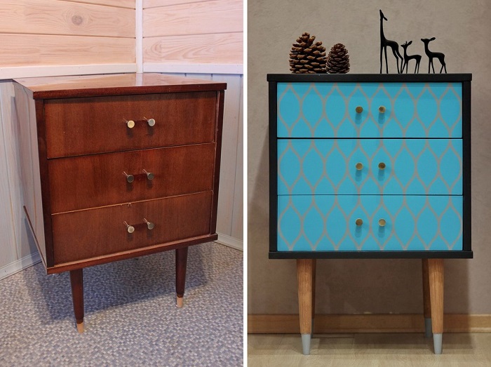 Семьям с ограниченным бюджетом необходимо задуматься о переделке старой советской мебели из ДСП. Такая процедура поможет вам сэкономить определенное количество денег, ведь не придется покупать новую мебель. Еще один плюс – получение интересного и оригинального интерьера. Если вы решились на реставрацию, в первую очередь обратите внимание, присутствует ли на тумбе или столе самоклеящаяся пленка «под дерево». С ее помощью хозяева часто пытаются придать предметам интерьера обновленный внешний вид, но в результате именно эта пленка делает мебель устаревшей. Лучше снять ее и покрыть прикроватный столик или сервант быстросохнущей краской на водной основе. Не бойтесь экспериментировать с цветами и оттенками, но не забывайте ориентироваться на свой интерьер. Если он оформлен в светлых тонах, мебель можно сделать яркую. А вот для более темных квартир подойдут светлые предметы, например, белые или бежевые.