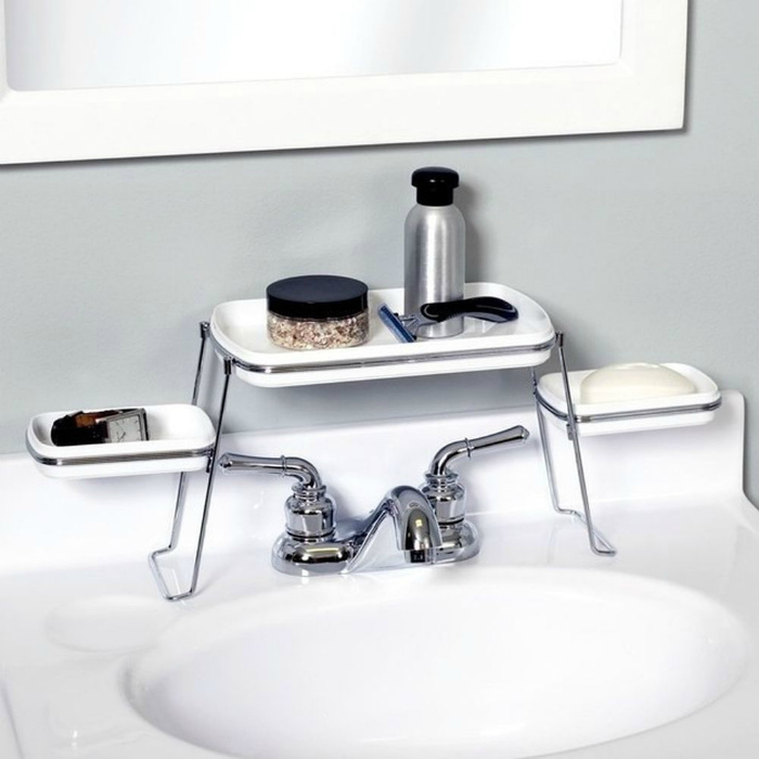 Полка для раковины. | Фото: Boom.ms. Компактная приставная полочка для раковины - эргономичная система хранения, которая позволит убрать все с бортиков раковины или ванны.