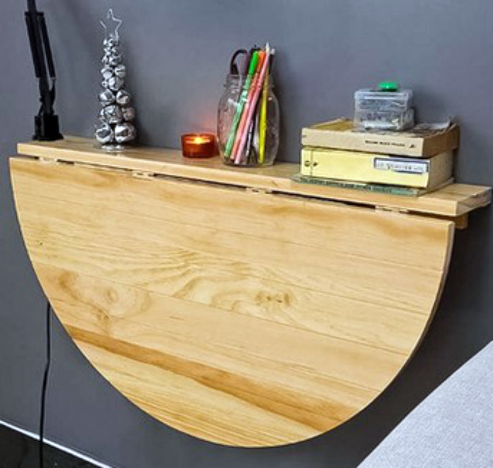 Откидной столик, закрепленный на стене. | Фото: Как сделать. Раскладной столик, прикрепленный к стене - прекрасный способ обзавестись обеденной зоной на крошечной кухне.