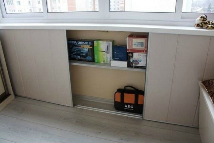 Скрытый шкафчик под подоконником. | Фото: Zinoti.lt. Задействуйте широкую стену с подоконником для организации скрытой системы хранения. По мнению Novate.ru такой шкафчик, станет прекрасной альтернативой традиционному громоздкому шкафу.