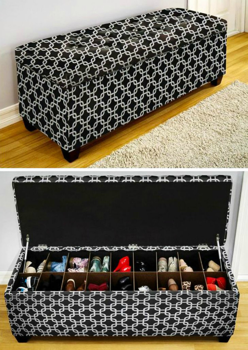 Диван с ящиком для обуви. | Фото: Boom.ms. Компактный диван-скамья с вместительным органайзером для хранения обуви. Такой диванчик станет прекрасным дополнением интерьера маленькой прихожей и избавит от необходимости покупать специальные полки для обуви.