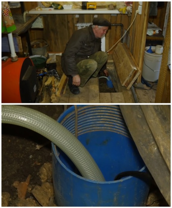 В подполе Владимир выкопал скважину, установил насос и теперь в доме есть вода (д. Зарытки, Рязанская обл.). | Фото: youtube.com/ FORUMHOUSE.