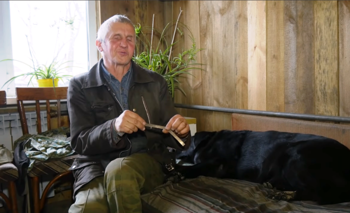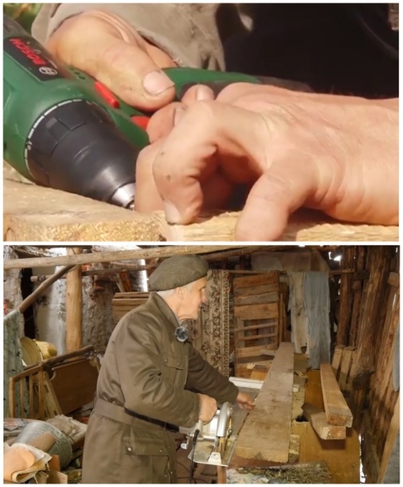 С электроинструментом Владимир справляется сам – на ощупь (д. Зарытки, Рязанская обл.). | Фото: youtube.com/ FORUMHOUSE.