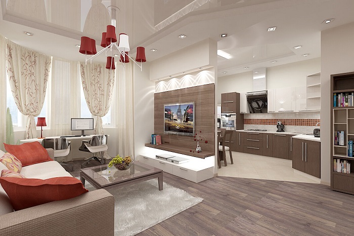 Очень важно, чтобы интерьер кухни-гостиной выглядел красиво и гармонично. Для этого необходимо обозначить зоны, выделив их границы. Ниже изложены самые популярные варианты зонирования, которые подойдут для оформления данного помещения.