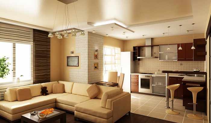 Для начала следует понять, какие функции должна выполнять комната. И пускай вас не смущает большая площадь кухни-гостиной. Именно размер обычно вводит хозяев квартиры в заблуждение, в результате чего получается пространство, в котором слишком много лишних предметов. Это яркие пример того, как разместить в комнате все, что нужно, но при этом заставить помещение абсолютно ненужными вещами. Чтобы избежать подобной ошибки, определите, какие функции будет выполнять комната, в соответствие с ними, разделите ее на зоны, а затем сосредоточьте свое внимание на их оформлении.