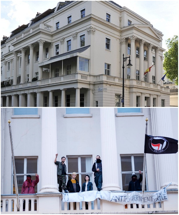 Роскошный особняк на Итон-сквер, купленный российским бизнесменом за 15 млн. фунтов, был захвачен членами группировки Autonomous Nation of Anarchist Libertarians. | Фото: theguardian.com.