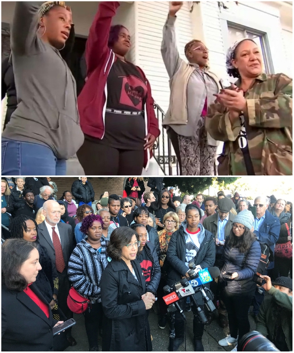 Сердобольный народ требует, чтобы «обездоленных» мамочек из «Moms 4 Housing» оставили в покое. | Фото: nbcbayarea.com/ kqed.org.