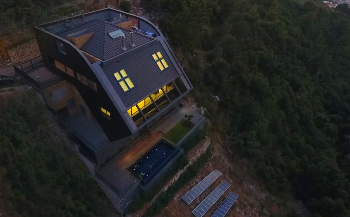 Чтобы не занимать площадь крыши, солнечные батареи поместили на склоне утеса ниже самого дома (CH730 Villa, Chnaniir). | Фото: newatlas.com.