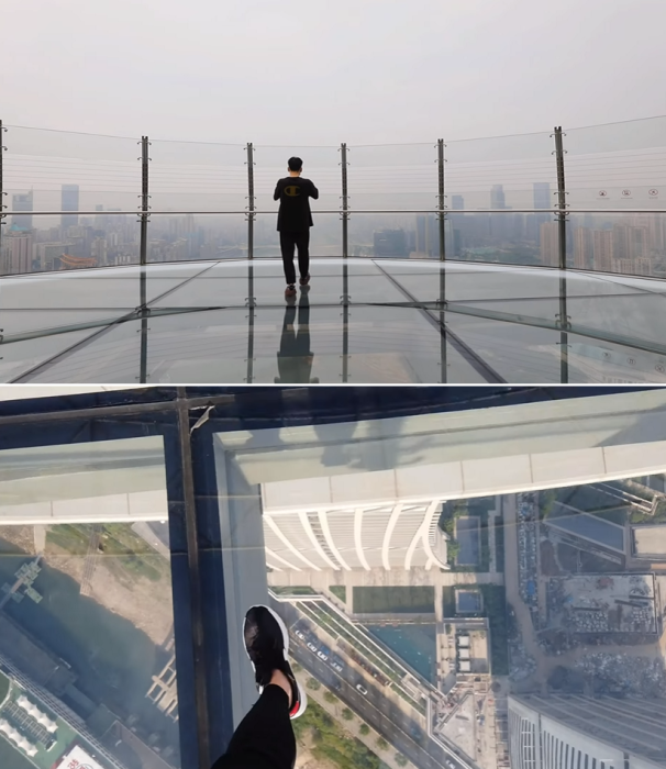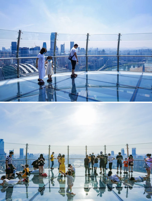 Только после этого экстремалы смогут сполна насладиться умопомрачительным видом под ногами на высоте 250 м. Несмотря на то, что это все-таки аттракцион не для слабонервных, желающих прогуляться по стеклянному полу хоть отбавляй.