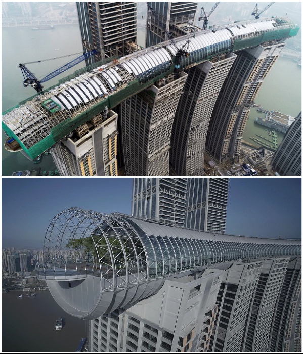 «Небесный мост», расположенный на высоте 250 м, входит в строящийся комплекс Raffles City Chongqing (проект архбюро Moshe Safdie). | Фото: tr.wikipedia.org/ realt.onliner.by.