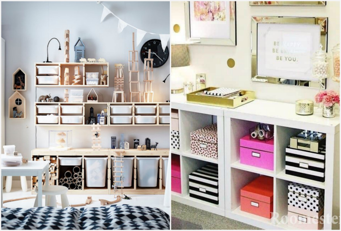 Распихивать все по коробкам. | Фото: HappyModern.RU, freshshe.ru. По мнению Novate.ru, декоративные коробки для хранения выглядят довольно привлекательно, если не переборщить. Иногда рационалисты и любители порядка слишком увлекаются симпатичными коробочками, в которых не скапливается пыль, и превращают свой дом в склад. Специалисты рекомендуют чередовать коробки с вещами, стоящими в открытом доступе. В противном случае вы получите монотонный и унылый интерьер, который со временем начнет раздражать.