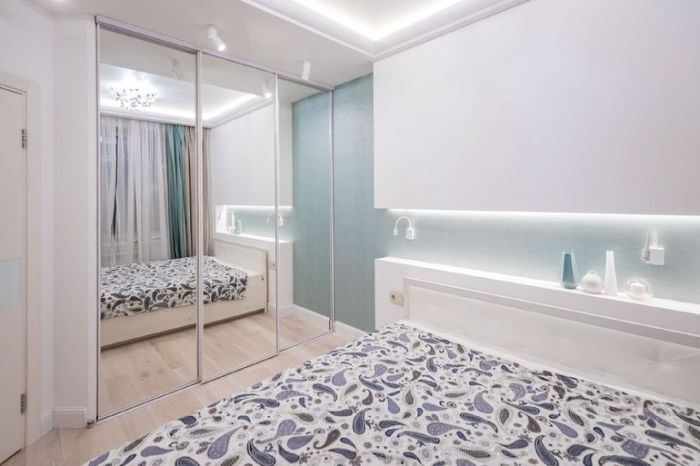 За зеркальной дверью спрятали вместительную гардеробную. | Фото: onashem.mediasole.ru.