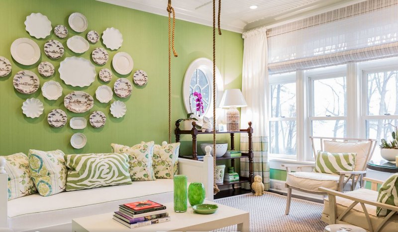 Каждый оттенок зеленого хорош по своему и обладает определенными свойствами. Важно отыскать к ним правильное сочетание, что позволит удачно разбавить цветовую палитру в помещении.