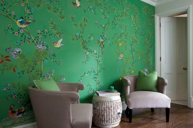 Гармоничный, умиротворяющий и благородный зеленый цвет часто присутствует в обстановке современных интерьеров. Его с легкостью можно охарактеризовать как универсальный, ведь он уместен в любой комнате. Природная красота абсолютно всех оттенков зеленого, фисташкового, изумрудного, бирюзового, мятного и других, вдохновляют дизайнеров на интересные идеи в создании интерьерных проектов. Когда для декоративной отделки стен используются зеленые обои в интерьере, это кардинально влияет на атмосферу в помещении. Цвет благотворно влияет на эмоциональное и физическое состояние, действует успокаивающе, придает уверенность в своих силах, создает уютную обстановку.