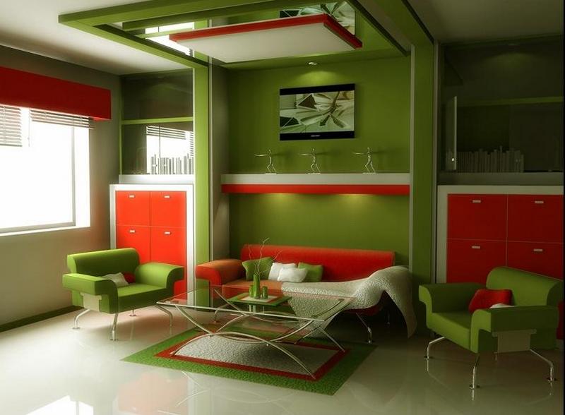 Светло-оранжевый солнечный оттенок с энергичным зеленым соединяются в яркий и позитивный дуэт. Такая комбинация часто применяется в дизайне детских комнат и кухонь. Насыщенные красные и оранжевые детали стоит использовать в правильных пропорциях. Сочетание малинового с зеленым создает привлекательный, веселый и аппетитный интерьер. Розовые оттенки хорошо взаимодействуют с яркими или нежными тонами зеленого, а также с бирюзовым и серо-зеленым цветом. Красно зеленая гамма часто встречается в современных стилях хай-тек или модерн. Эти два ярких насыщенных цвета удачно разбавляются белыми, бежевыми, черными и желтыми фрагментами.