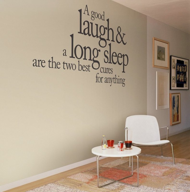 Отобразить мудрые мысли, интересные выражения, подчеркнуть определенную тематику, позволяют декоративные наклейки на стены, на которых размещены различные надписи. Широкий выбор стикеров цитат, афоризмов и крылатых фраз позволяет подобрать индивидуальное выражение, которое подчеркнет характер и душевное состояние владельца помещения, придаст атмосфере особенные запоминающиеся штрихи. Кстати любую фразу возможно составить и самостоятельно, купив для этого клеящиеся отдельные буквы. Оформить надпись можно оригинальным способом, подобрав для каждого отдельного слова буквы разных размеров и шрифтов. Декоративные фразы могут напоминать о важном, играть мотивирующую роль или отображать вековую мудрость древних философов. Здесь все зависит от личного мировоззрения, жизненной позиции и вкусовых предпочтений каждого.