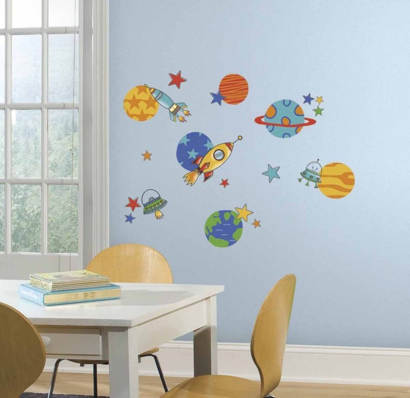 В детской комнате при помощи декоративных интерьерных стикеров легко и просто создать красочную сказочную атмосферу. Такой декор послужит не только привлекательным украшением, но и сумеет поднять настроение, поможет лучше развиваться. Красивые изображения на стенах в детской комнате позволят малышу с интересом изучать названия различных предметов, букв и цифр.