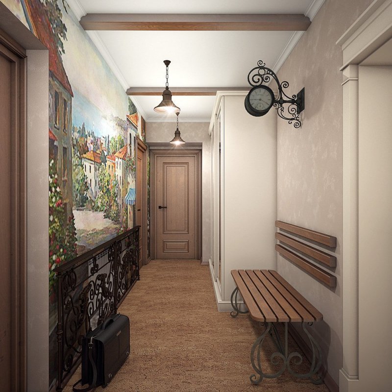Сразу переступая порог дома гости попадают в прихожую, на основе этого создается первое впечатление хозяевах. Поэтому оформлению коридора необходимо уделить должное внимание. Художественная роспись на стенах или потолках прихожей должна быть выполнена максимально качественно. Для этого лучше всего пригласить художника, который сумеет своей работой презентовать комнату в лучшем свете. Для того, чтобы оформить помещение самостоятельно рекомендуется выбирать простые в исполнении рисунки.