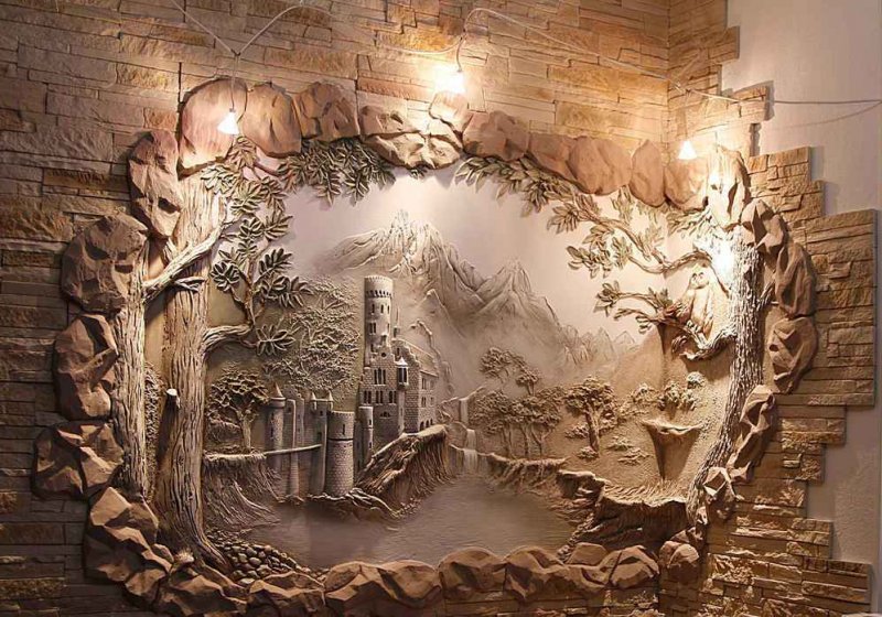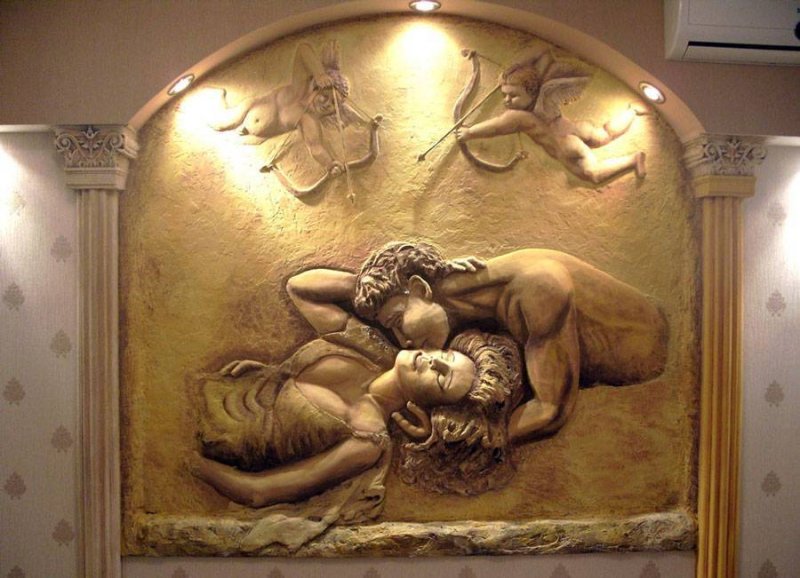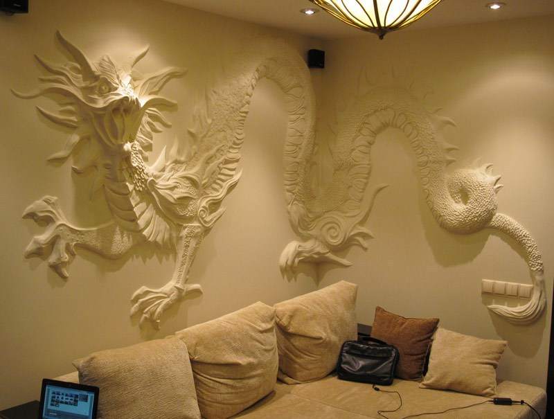 Объемный вариант изделия, который изготавливается из специальной штукатурки, гипса или металла.