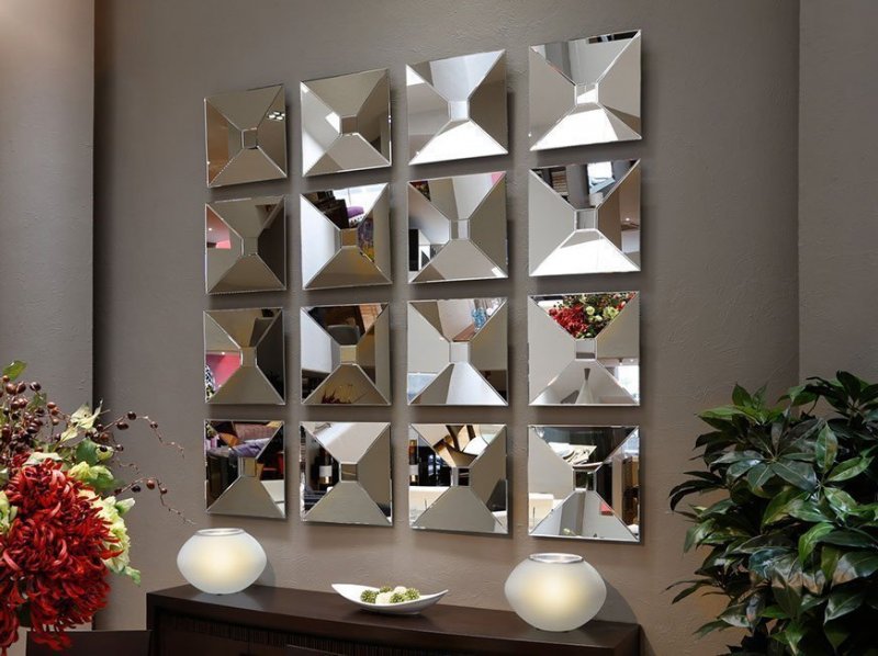 Современное панно, созданное из кусочков зеркал. Сложные его варианты смогут изготовить лишь специалисты, а простые – очень даже доступны для самостоятельной работы. Зеркальное панно станет дополнительной подсветкой в комнате.