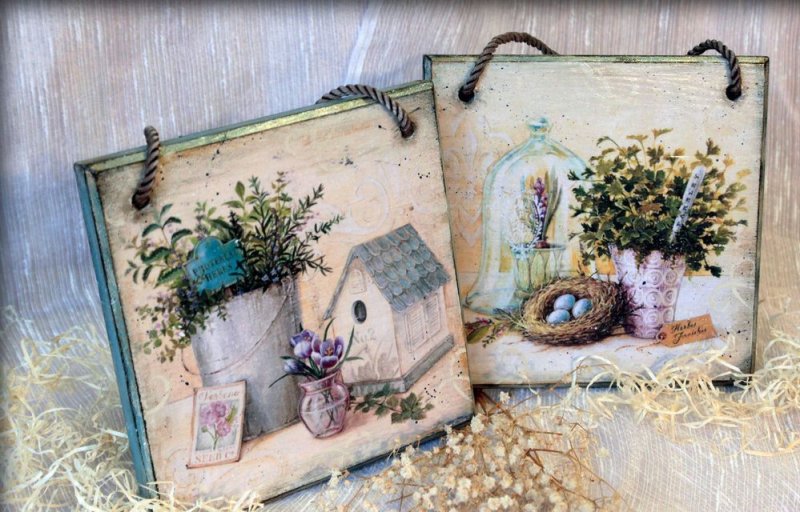 Панно, выполненное в технике декупаж, способно украсить любую стену: будь то кухня или коридор. Эта техника заключается в том, чтобы наклеивать на выбранную поверхность вырезанные картинки, элементы декора, а затем покрыть все это несколькими слоями лака. Общая идея произведения может быть любой.