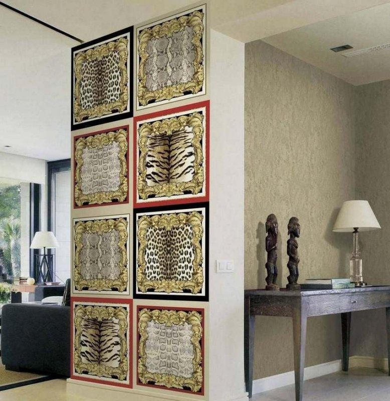 Вырезаем фрагменты из имеющихся обоев. Кусочки могут быть любой формы, но должны подходить друг к другу. Учитывайте общий вид всей будущей композиции. Например, можно вырезать квадратики с цветами из трех разных видов обоев и совместить их вместе в несколько рядов в определенной последовательности. При этом парные элементы не обязательно располагать симметрично.