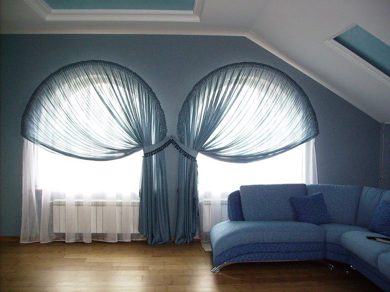 Занавески могут не только украсить интерьер, но и скорректировать некоторые недостатки оконных проемов.