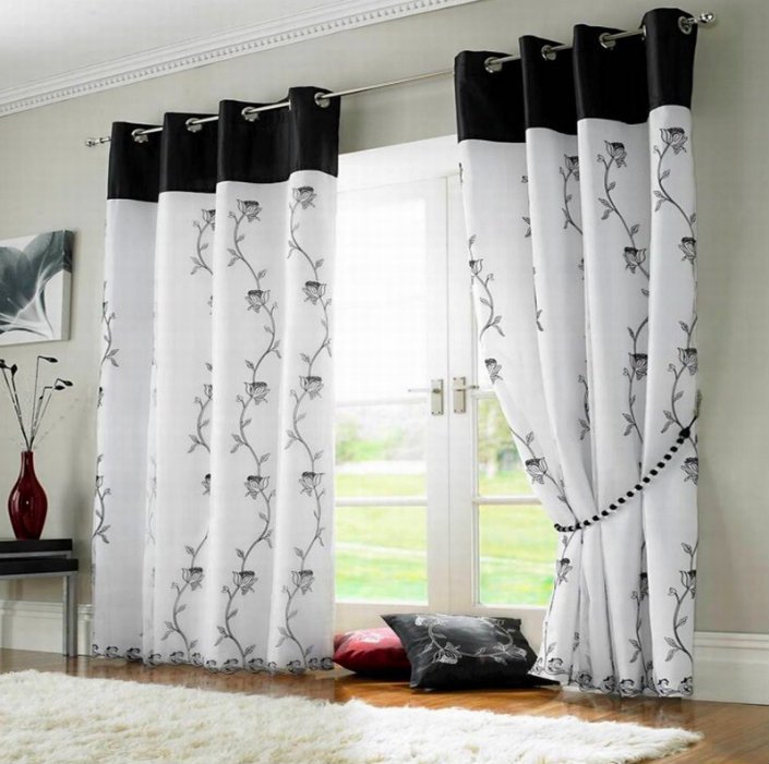 Рисунок на портьерах должен подходить к общему стилю помещения. К примеру, черно-белая клетка будет нелепо смотреться в комнате, оформленной в стиле прованс. Здесь идеально подойдут узоры в мелкий цветочек.