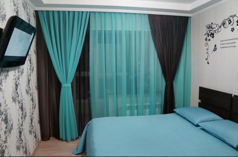 Беспроигрышный вариант: выбрать для портьер тот же цвет, что и стены, но изменить оттенок. Можно использовать ткань с мелким рисунком.
