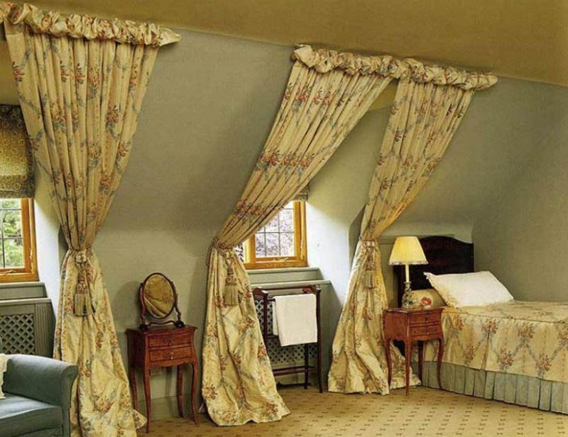 Австрийские портьеры – это стиль, родственный французскому. Волны по нижнему краю, много складок, плавные линии, использование натуральных тканей – все это присуще австрийскому стилю. Также этот стиль добавит благородства интерьеру комнаты, отделанной деревом или вагонкой.