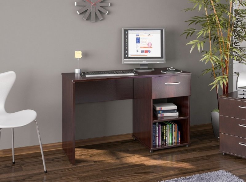 Цвет венге в интерьере кабинета будет весьма кстати. Лаконичная мебель добавит помещению строгости, некую долю официальности и аристократических нот. Темно-коричневые оттенки дерева прекрасно дисциплинируют и способствуют интеллектуальному труду. Преимущественно кабинеты оформляются в классическом стиле или в минимализме. Хотя в интерьере допустимо применять и другие стилистические направления.