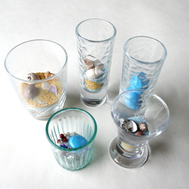 Гелевые изделия смотрятся очень красиво и необычно. Вариаций может быть множество: аквариум, новогодние шарики, изделие из геометрических тел, цветок, «бокал коньяка». Все зависит от вашей фантазии и какой декор вы хотите использовать. При этом важно не нагромоздить слишком много декоративных элементов. Лаконичное и со вкусом выполненное изделие будет смотреться великолепно.