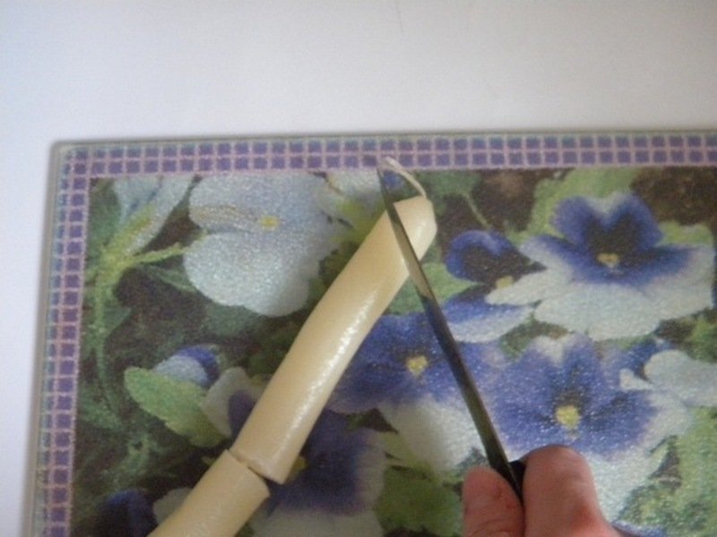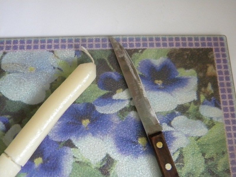 Воспользовавшись канцелярским ножом, отрежьте остатки на противоположном конце изделия, со стороны фитиля.