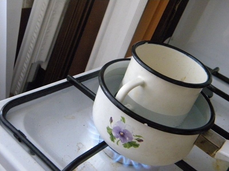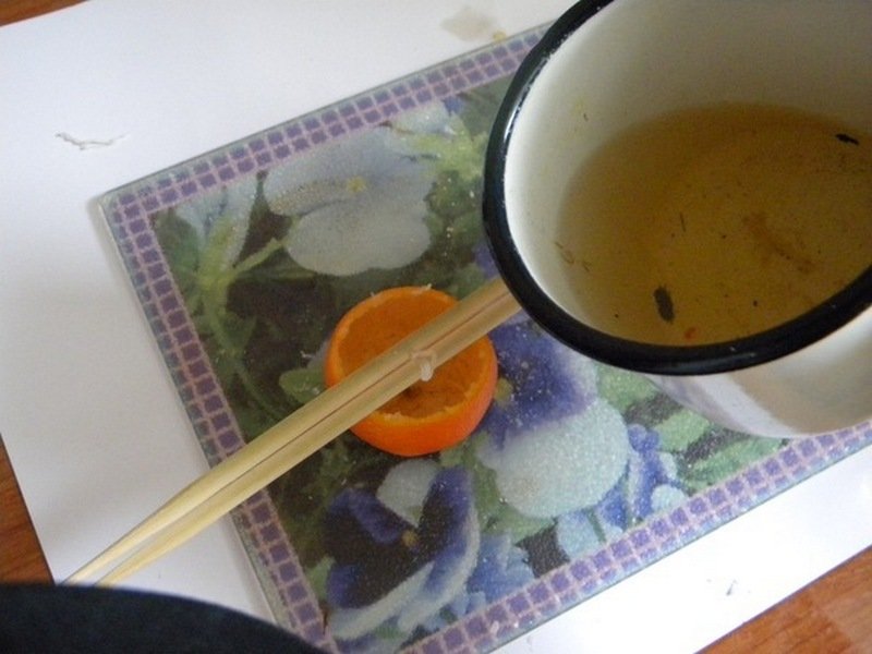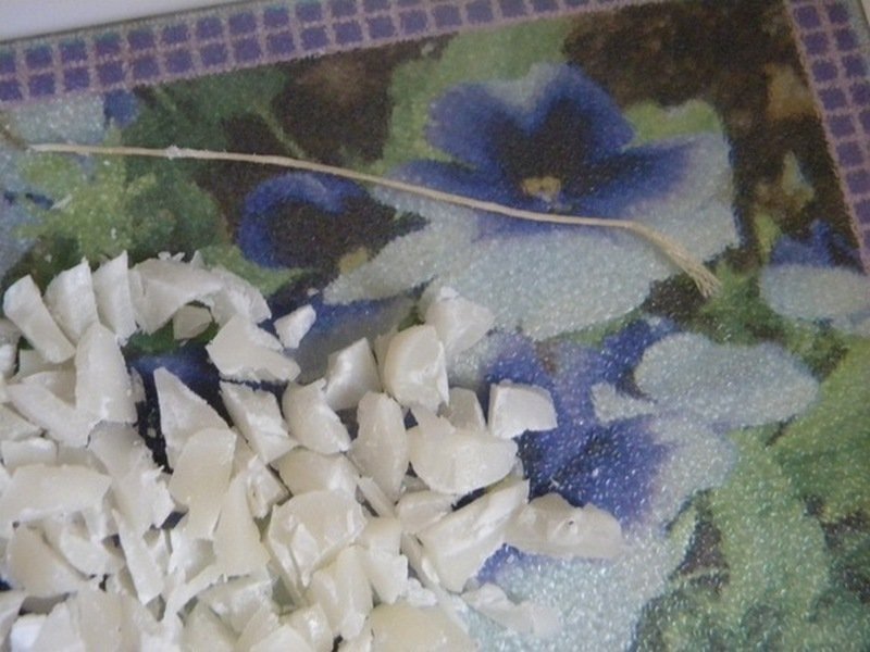 Важно, чтобы парафин не закипел, иначе декор сместится и вся красота будет нарушена. Чтобы окунать свечку было удобно, подберите емкость так, чтобы она подходила под размер изделия.