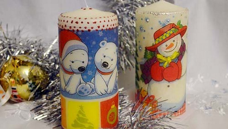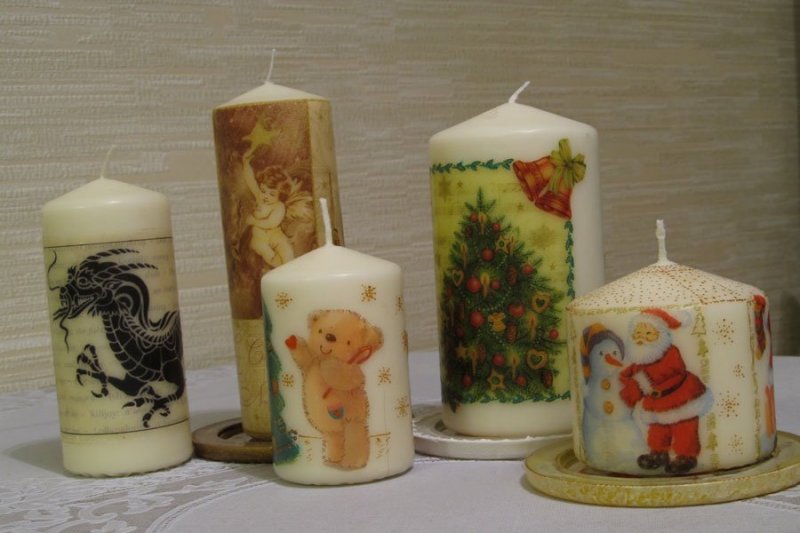 Лучший материал для декупажа – это специальные декупажные карты, выполненные из рисовой бумаги, или многослойные салфетки. Декупаж – техника достаточно древняя, уходящая корнями в Средневековье. Но она не потеряла актуальности до сегодняшнего дня. Оптимальный вариант для декорирования в этой технике – белые толстые свечи с плотным верхним слоем. Можно ли использовать цветные свечи? Можно, но фон картинки нужно подбирать к оттенку декорируемого изделия. Красиво и романтично смотрятся тексты или рисунки с нотами. Подготовьте для работы: