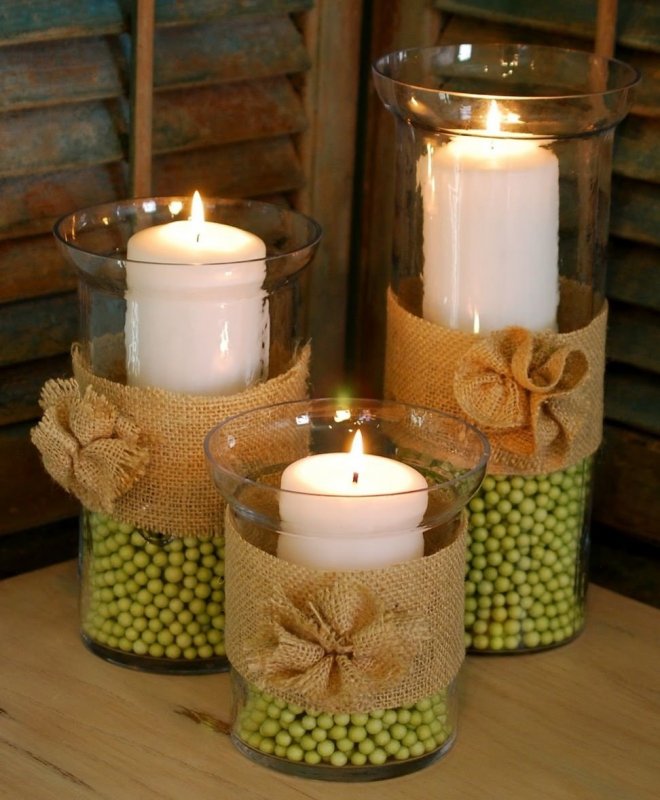 Свечи прекрасно украшают интерьер, создают домашний уют. Но обычные изделия даже в изысканном подсвечнике смотрятся недостаточно нарядно. Идеи, изложенные в этой статье, помогут вам создать настоящие произведения искусства при минимальных затратах времени и средств. Большую часть декоративных элементов вы сможете найти дома в ящичке для рукоделия, на кухне или в саду на даче.