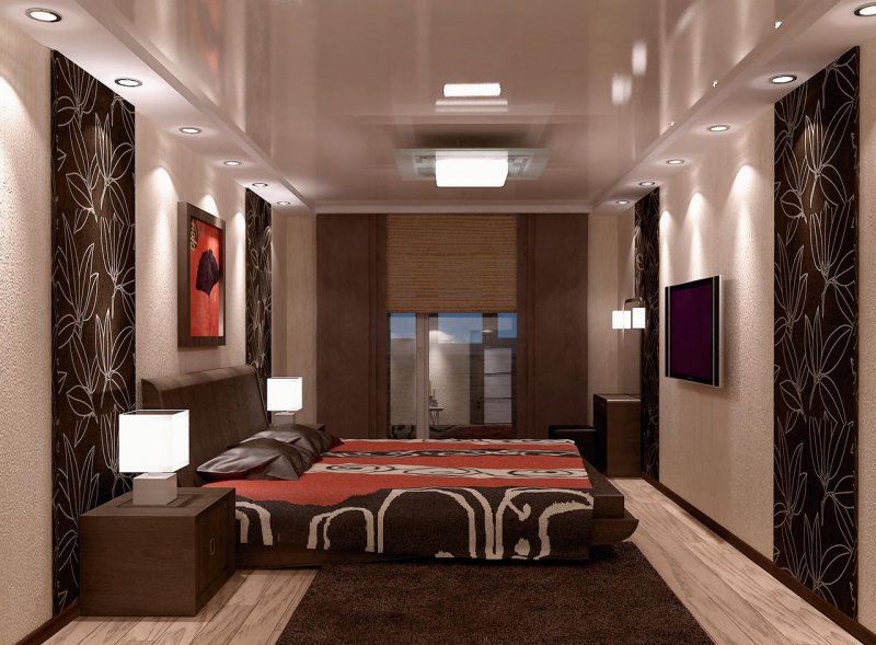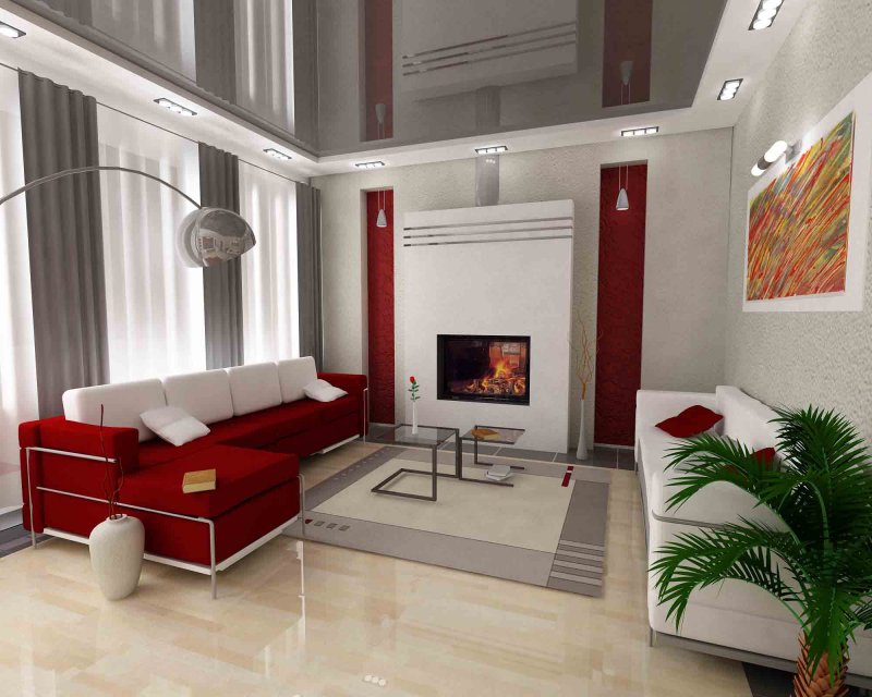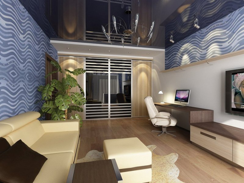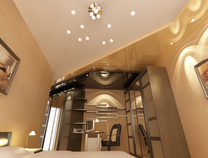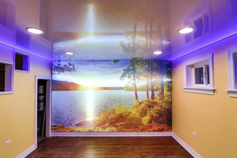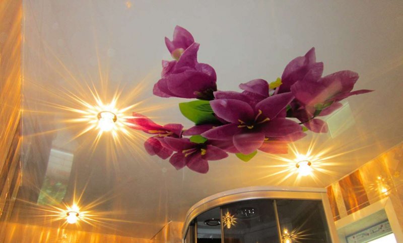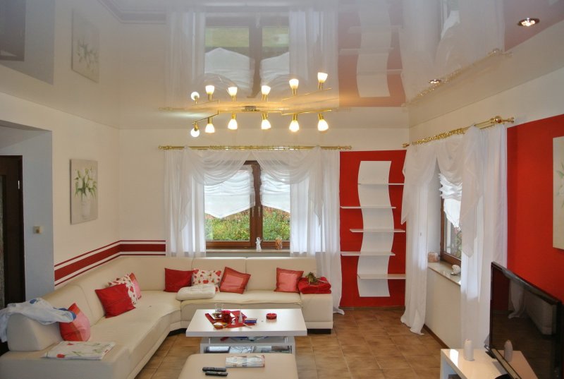 Натяжной потолок представляет собой полотно, закрепляемое под основным верхом помещения на специально сконструированном профиле. Он отлично выглядит, решает многие проблемы с оформлением пространства, изготавливается из различных материалов. Правильно установленные натяжные потолки в интерьере полностью меняют внешний вид любой комнаты в лучшую сторону, зрительно расширяя даже тесные помещения «хрущевок». Содержание Преимущества, недостатки натяжных потолков Выбор материалов, их характеристика ПВХ-полотно Глянцевый Матовый Сатиновый Многообразие форм, уровней Цветовое разнообразие Однотонные Фотопечать Стили потолков Нюансы освещения Способы крепления потолочного карниза Советы по уходу за потолком Заключение Преимущества, недостатки натяжных потолков Как и любой современный элемент оформления, данный предмет имеет свои плюсы и минусы. Преимущества: конструкция монтируется быстро, относительно легко, без лишнего мусора; не требуется предварительное выравнивание поверхности; защищает комнату от воды, при протекании сверху – выдерживает до ста литров воды на метр квадратный; достаточная долговечность, с сохранением привлекательного внешнего вида – 9-16 лет; устанавливается в любом помещении – влажном, холодном, пожароопасном; маскирует провода от ламп, прочие коммуникации, потолочные балки, швы; возможность монтажа на любой высоте; огромное разнообразие расцветок, обилие дизайнерских решений. Недостатки: плохо переносит морозы, если отсутствует отопление; низкая прочность при воздействии острыми предметами; конструкции из ткани сложно очищаются при загрязнении; сложно установить самостоятельно, если нет опыта, подходящих инструментов; довольно высокая стоимость, особенно у текстильных вариантов. Выбор материалов, их характеристика В древности подобие натяжных потолков получали из шелковых, льняных тканей, которые подвешивались в мокром состоянии, а при высыхании создавали относительно ровную поверхность. Позднее их стали окрашивать в тон мебели, стен. Основные используемые материалы в современном времени – это текстильное полотно и пленка ПВХ. Поливинилхлорид существует любого цвета, матовый либо глянцевый, из ткани – только матовый вариант. ПВХ-полотно Пленочные полотна достаточно долговечны, обладают высокой водостойкостью. Ширина их ограничена, потому имеются малозаметные швы, образующиеся в местах сваривания полотен между собой. ПВХ-полотнам придается разнообразная фактура (матовая, глянцевая, «под текстиль»), наносится изображение любой сложности. Из серьезных минусов отмечается неустойчивость к воздействию острыми предметами, низким температурам. Глянцевый Блестящий, легко отражает лучи света, дает множество бликов, расширяет тесное пространство, делает его выше. Такое полотно, особенно белое, бежевое, наполняет помещение светом, но если его здесь в избытке, то глаза будут сильно уставать. В неотапливаемых помещениях загородного дома монтировать его не следует – за зиму покрытие придет в негодность. Матовый Данный вид выглядит более традиционным, классическим, напоминает качественную побелку, бликов не создает. Комната с таким потолком кажется уютнее, загрязнения на нем не так сильно заметны, как и не видны места стыков отдельных полотнищ. Покрытие рекомендуется для помещений, г